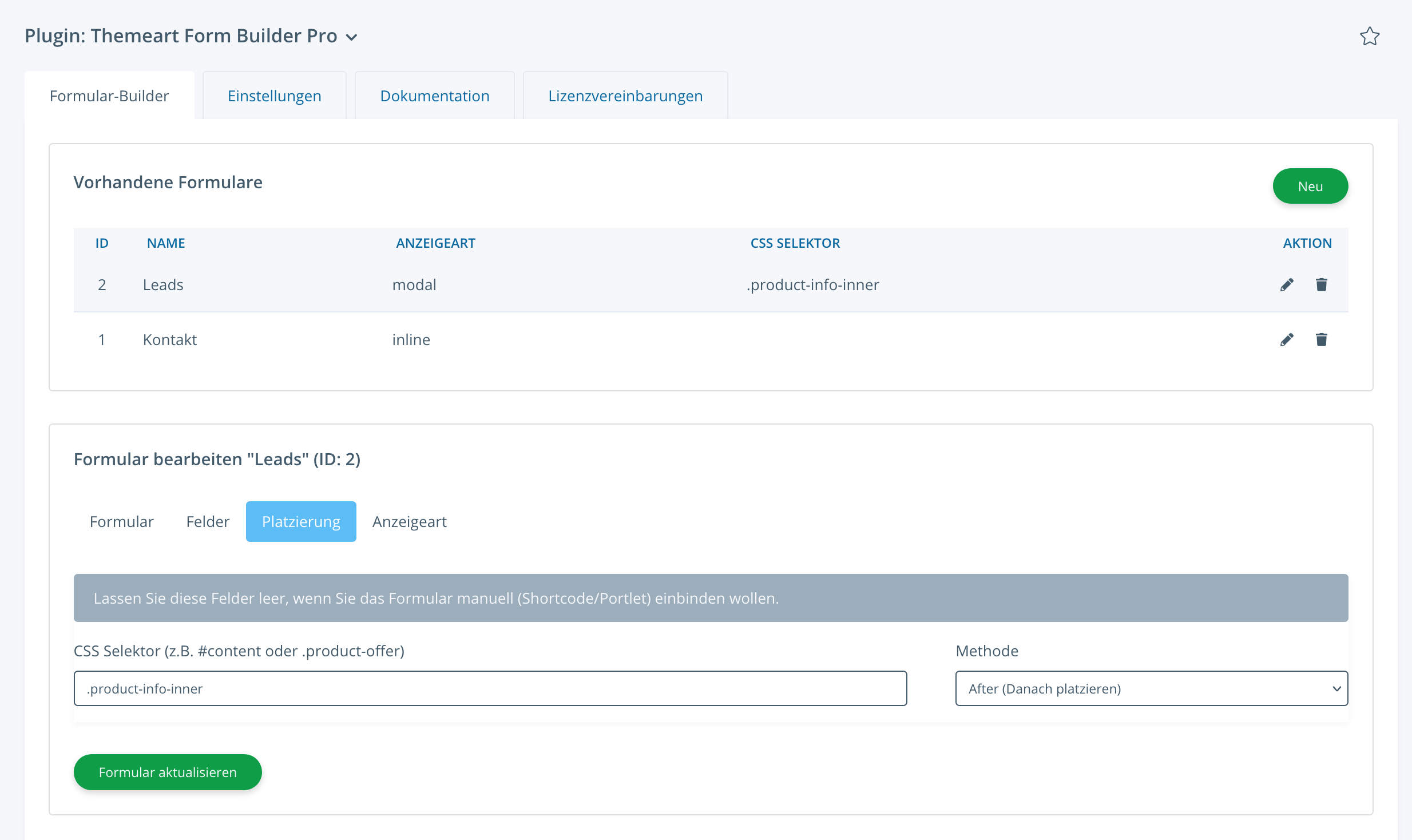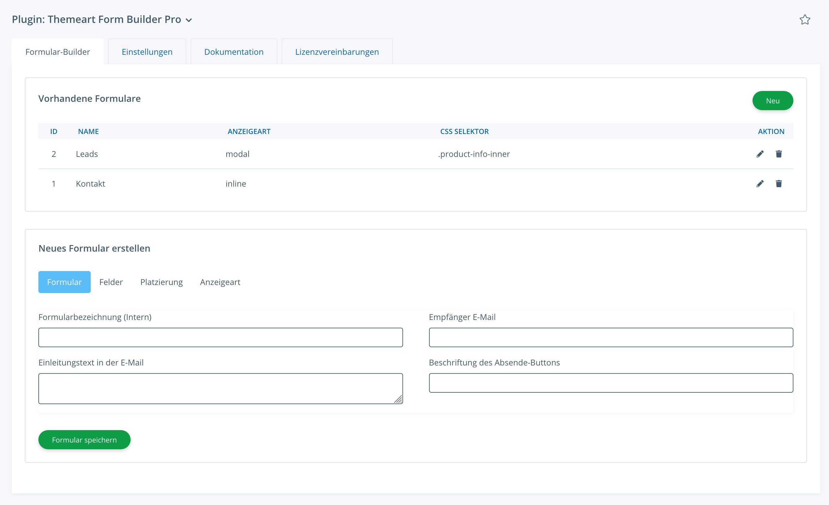 - Unbegrenzt viele Formulare erstellbar z.B. für Landingpages, Artikeln, Kategorien etc.