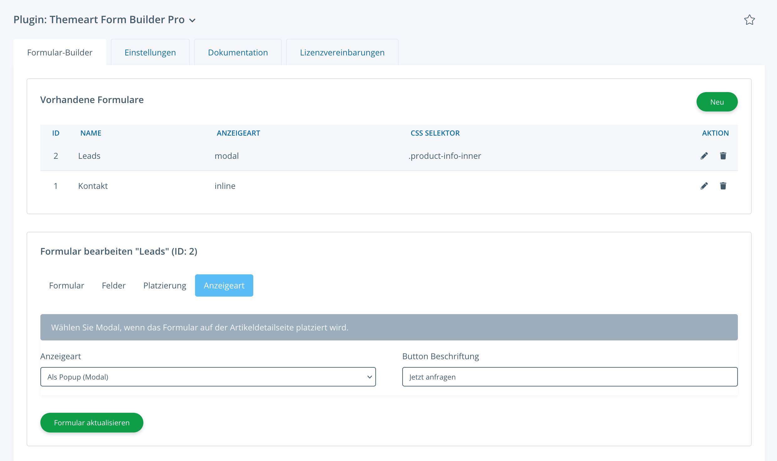 Der Form Builder Pro bricht diese Barrieren auf. Er erlaubt es, Formulare genau dort zu platzieren, wo der Informationsbedarf entsteht: direkt auf der Produktdetailseite, Landingpage, im Checkout oder in Blogbeiträgen.